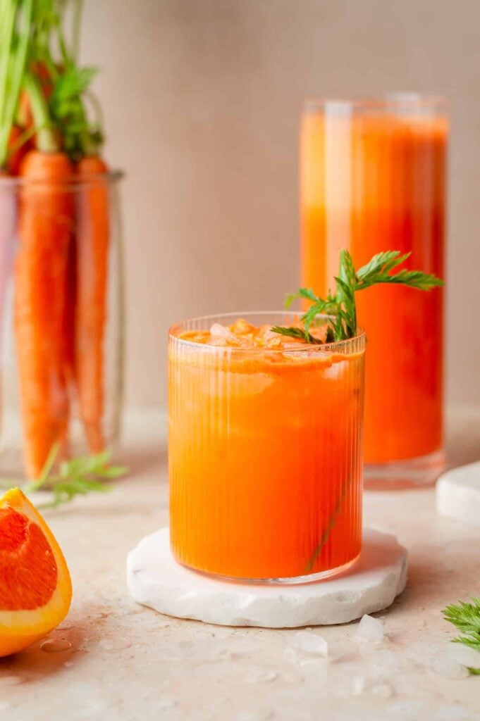 You’ll get vitamin C from both the mango and lime. Carrots add vitamin A and natural sweetness to the mix.