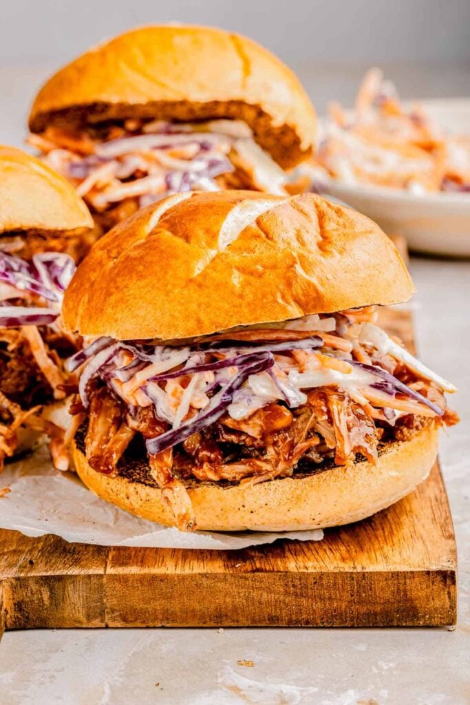 Serve on small buns with coleslaw on top. The crunchy slaw balances the rich, smoky meat perfectly.