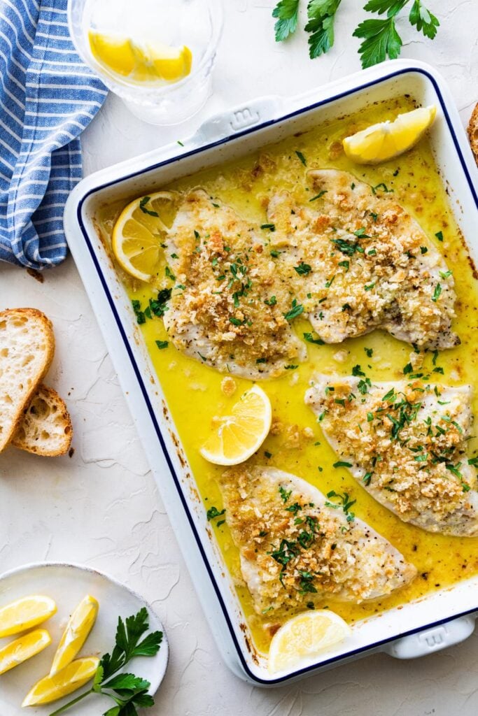 12. Oven-Baked Flounder with Seasoned Bread Crumbs