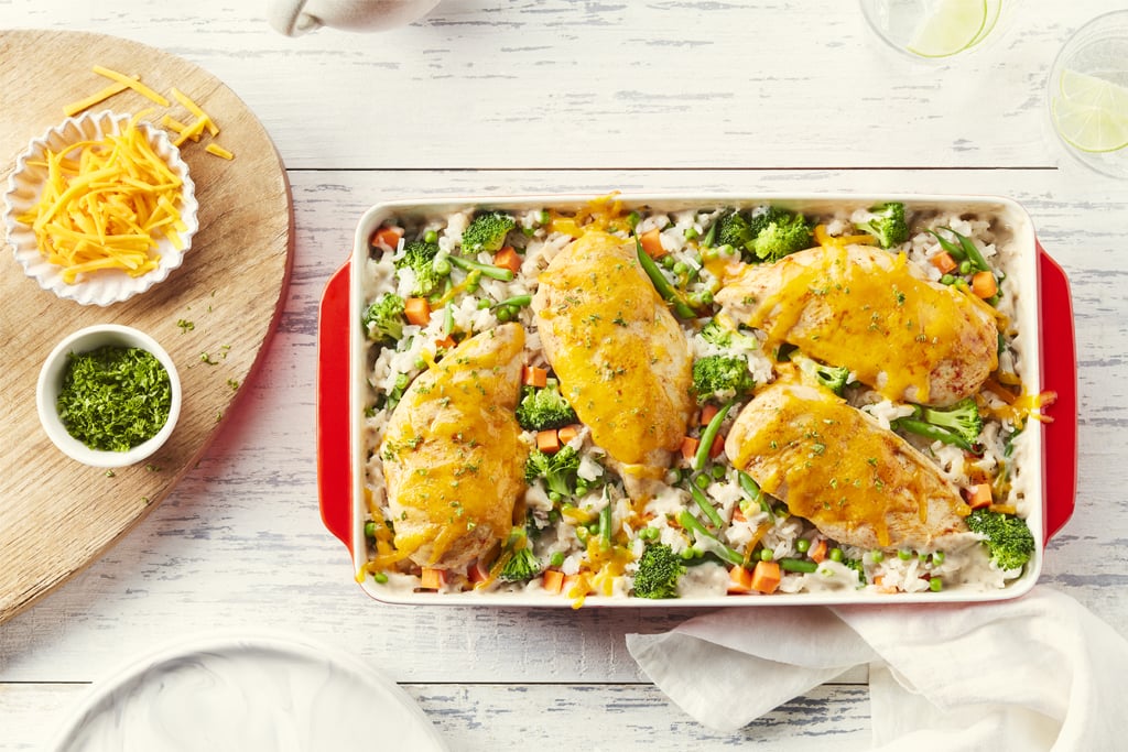 This one-pan meal brings together tender chicken and mixed vegetables in a creamy sauce. Use Campbell’s cream of mushroom or cream of chicken soup as the base.