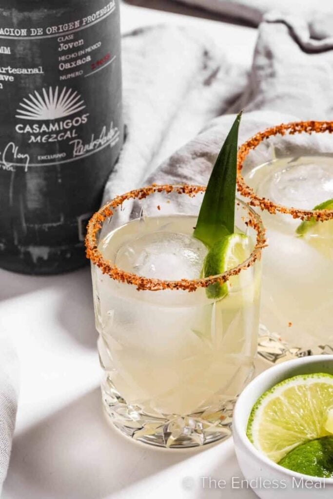 The smoke from the mezcal balances perfectly with tart lime. You can serve it on the rocks or straight up.