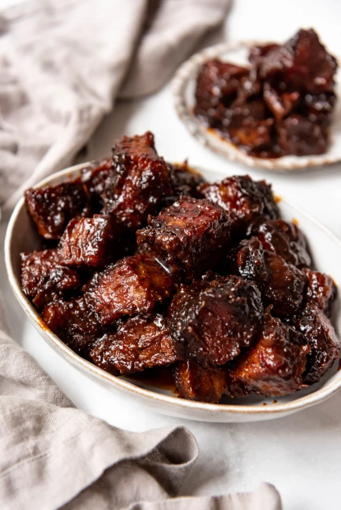 The soy glaze caramelizes during cooking. This creates a rich, savory coating on the meat.