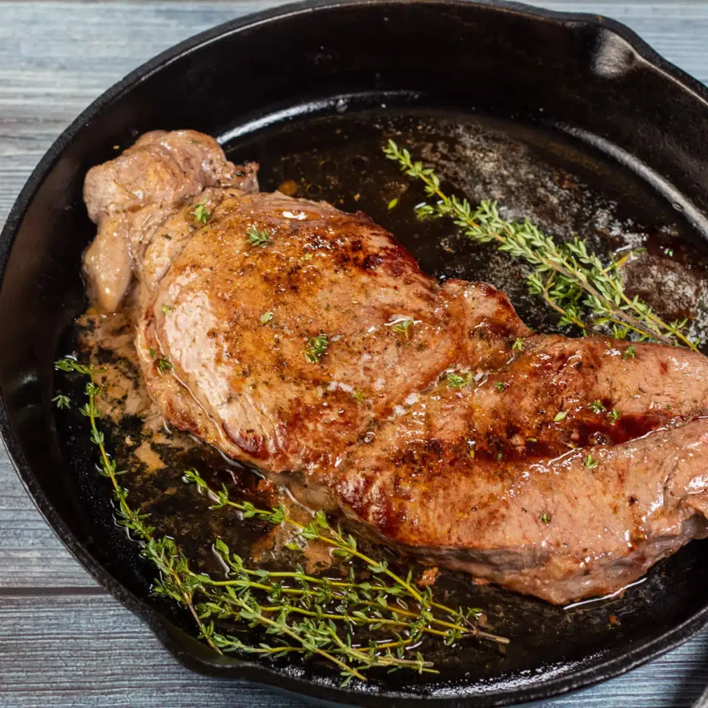 Cook the steak hot and fast like a regular steak. This method keeps the meat tender and flavorful.