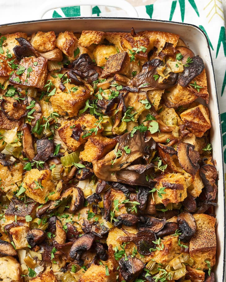 Start with your favorite Stove Top stuffing mix. Sauté sliced mushrooms in butter until they’re golden brown. Add dried or fresh thyme while cooking the mushrooms.