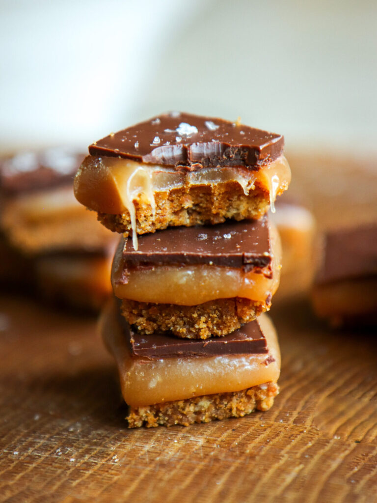 You’ll notice the dark brown top when it bakes. This signature look comes from the sugar and syrup used in the recipe.