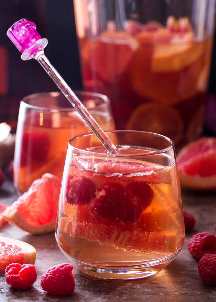 Mix one bottle of sparkling rosé with vodka, fresh raspberries, and blackberries in a pitcher. Add cranberry juice and simple syrup for sweetness.