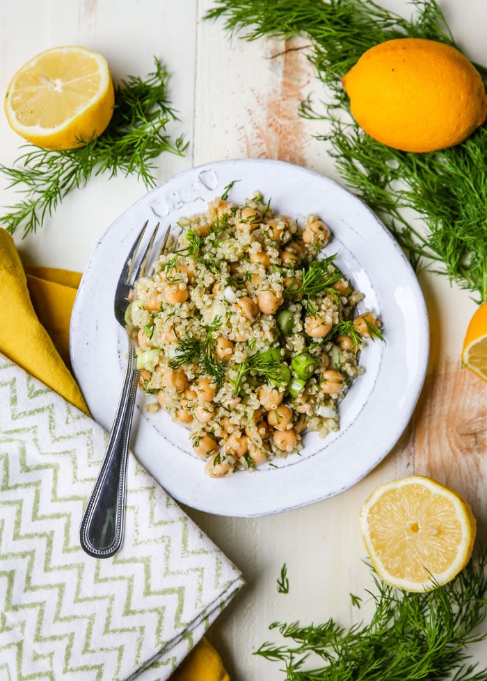 Mix the cooled quinoa with chopped fresh dill, lemon juice, and a drizzle of olive oil. Add diced cucumber and cherry tomatoes for extra freshness and crunch.
