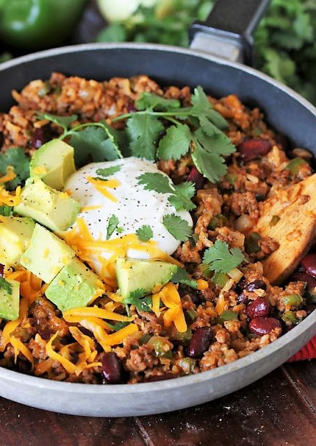 You can even mix it up and have a chicken burrito skillet recipe by subbing out the beef.