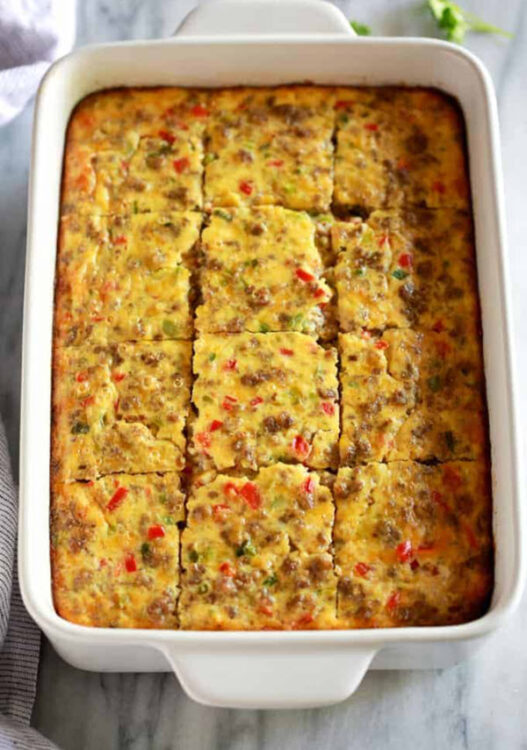 A breakfast casserole that’s full of sausage, eggs, and cheese is super comforting at any time of the day.