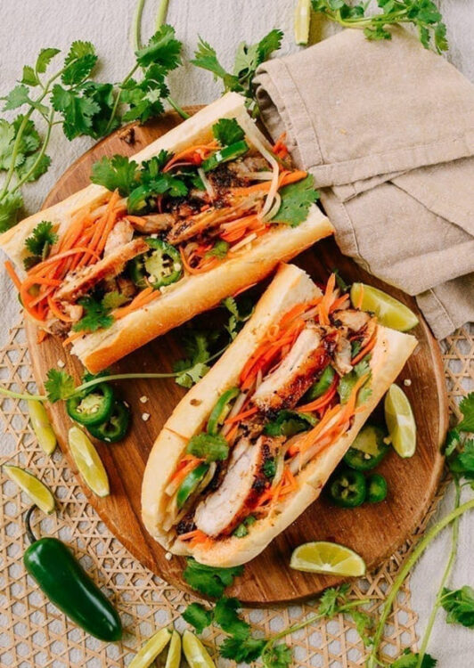 Banh mi is a delicious Vietnamese sandwich, and it’s chock-full of protein, fresh veggies like carrots, and herbs.