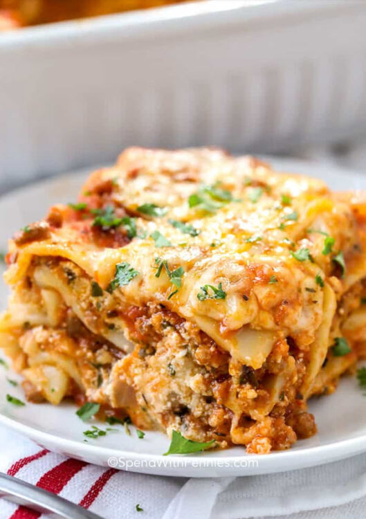 With mozzarella cheese, ricotta cheese, and parmesan cheese, this recipe has all of the melty cheesiness you love about lasagna.