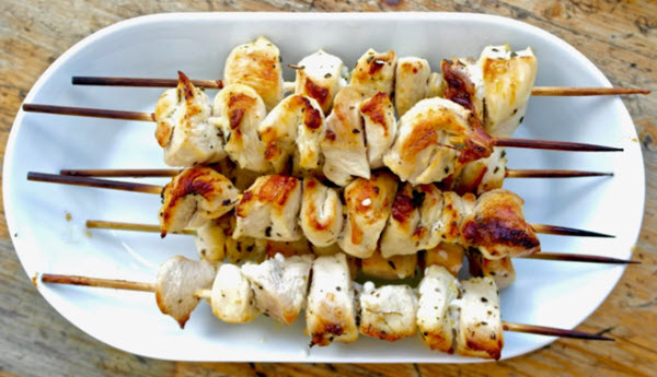 You can cook this chicken lunch recipe on the grill, but this recipe gives instructions for baking the skewers in the oven.
