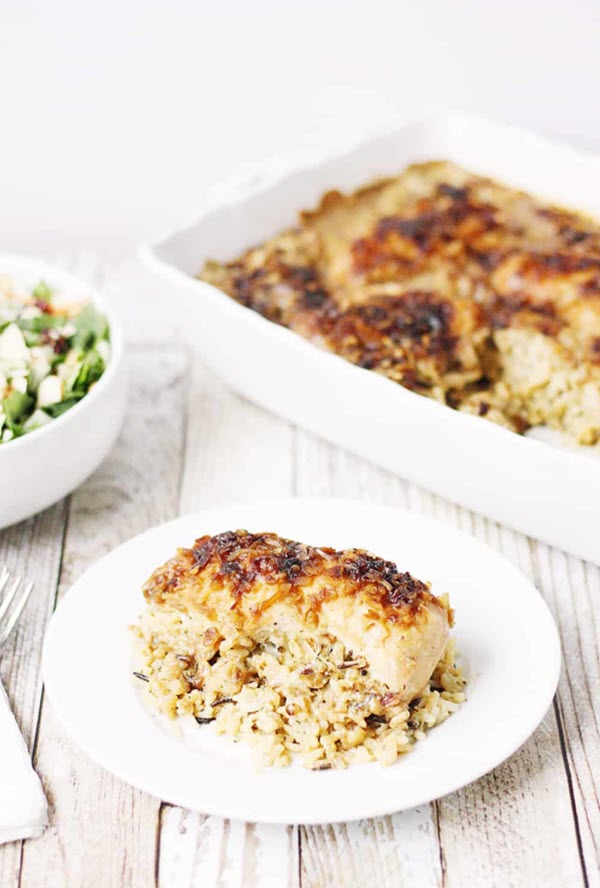 Cream of mushroom soup and cream of celery soup make this casserole super creamy, and the only seasoning you need comes from garlic powder and a box of Lipton Onion Soup Mix.