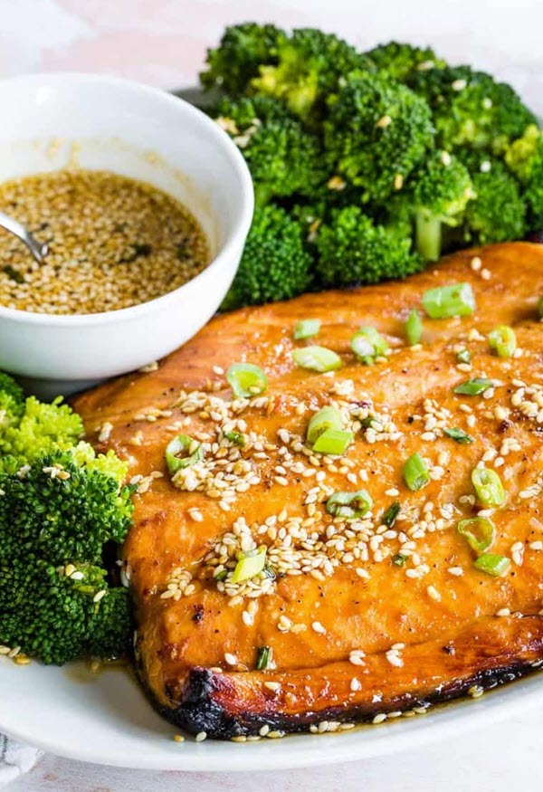 Serve your finished salmon with cauliflower rice, basmati rice, or brown rice. Add a side of broccoli or asparagus to complete this delicious salmon meal.