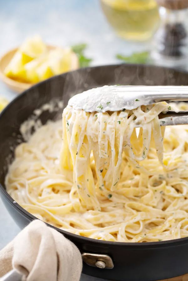 Are there people who don’t love an easy dinner such as fettuccini Alfredo? Seriously, this is such an indulgent meal and it’s comfort food at its finest.