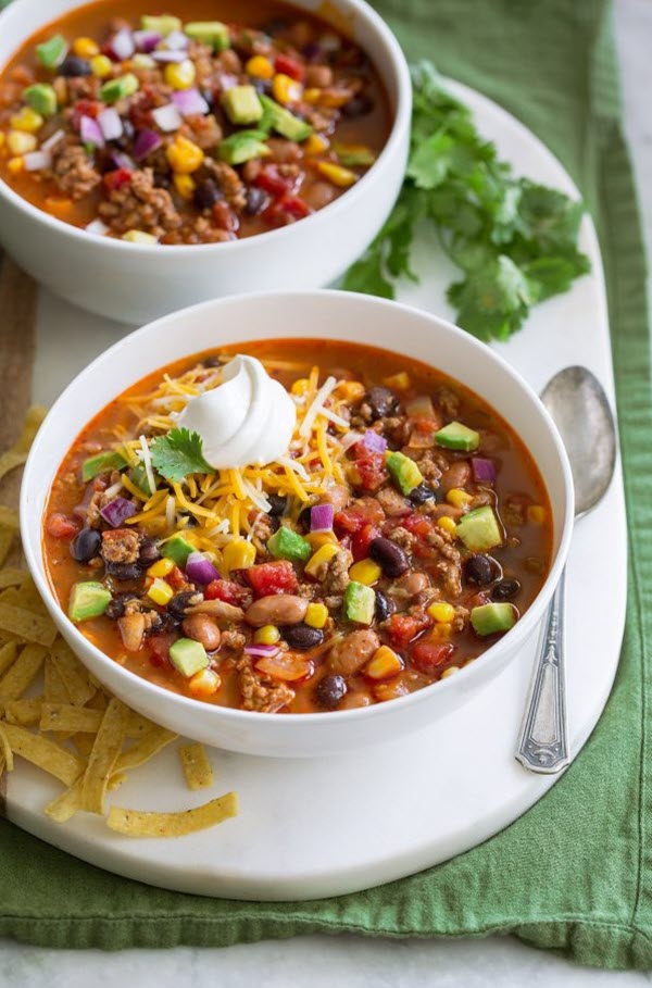 We love this particular taco soup recipe because it’s incredibly hearty.