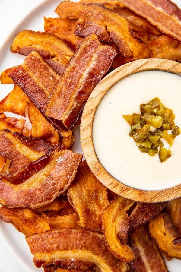 You can eat bacon chips with guacamole, queso, or any other type of keto-friendly dip.