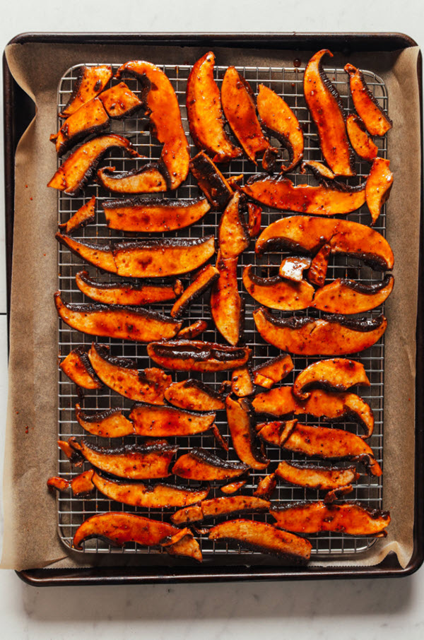 Are you craving bacon but living a vegan or vegetarian lifestyle? Give these crispy slices of “mushroom bacon” a try.