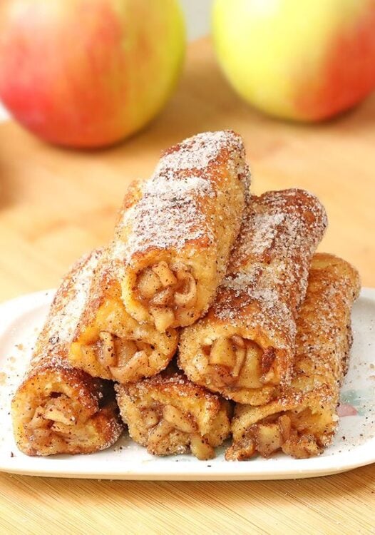 The delicious French toast roll up is filled with the classic flavor of French toast, apples, and cinnamon sugar.