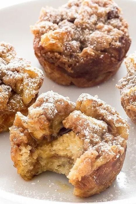 These muffin like pastries are filled with the flavors of a traditional croissant and topped with a sugar-cinnamon mixture for an extra mouth-watering treat you won’t be able to get enough of.