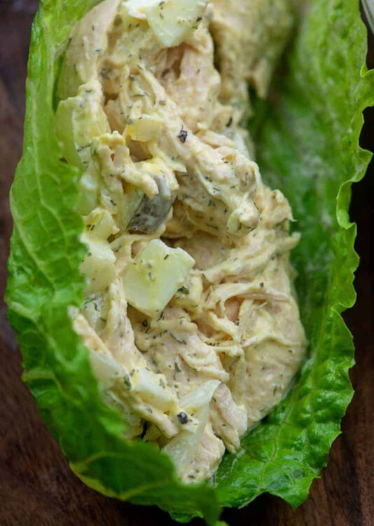 We love that this chicken salad recipe has pecans and boiled eggs. Also, you can use heart-healthy walnuts if you prefer those over pecans.