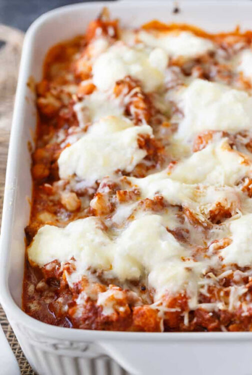 The ziti in this recipe is made from cauliflower and it’s absolutely heavenly.