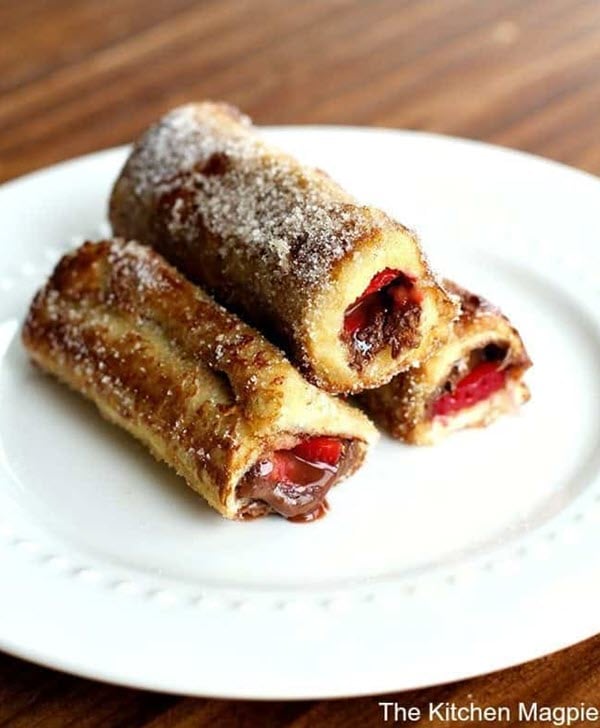 We love the combination of chocolate and strawberries, so we knew we had to try this recipe for Nutella and strawberry French toast roll-ups.