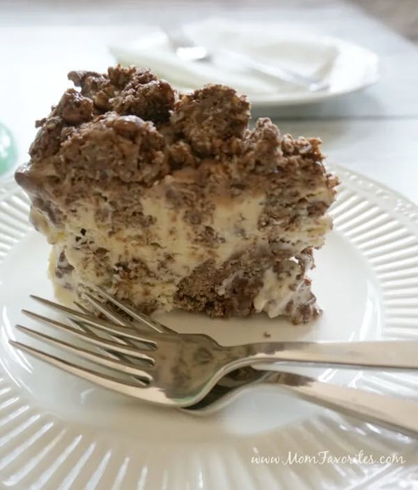 It’s hard to believe that this ice cream cake has just three ingredients, but it’s true. All you need is two flavors of ice cream, Nutella, and Rice Krispy cereal.