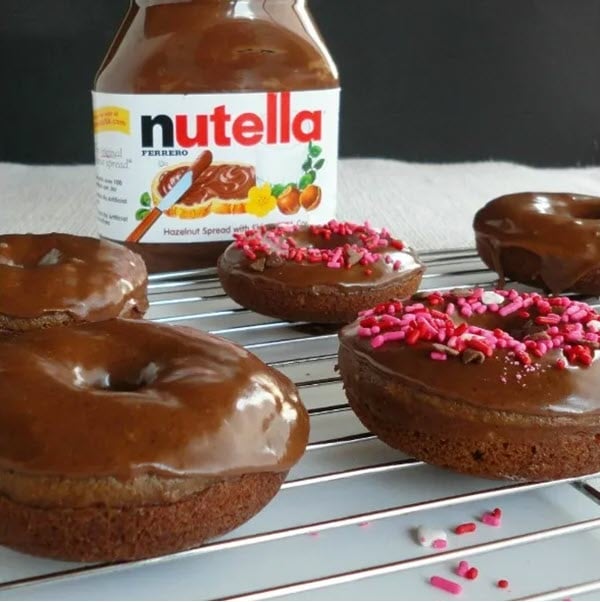 You need a donut pan to make these donuts. When they’re baked, glaze them with the Nutella glaze and add your choice of sprinkles.