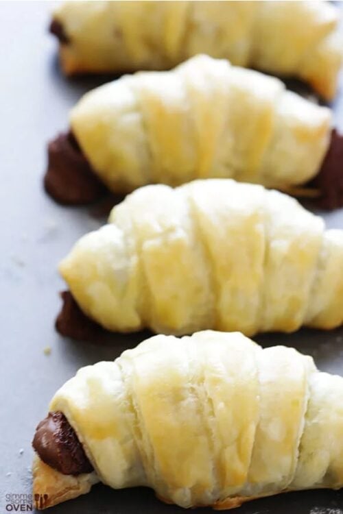 We love any recipe that lets us make good use of flaky, buttery croissants, and this recipe for Nutella filled croissants is dreamy.