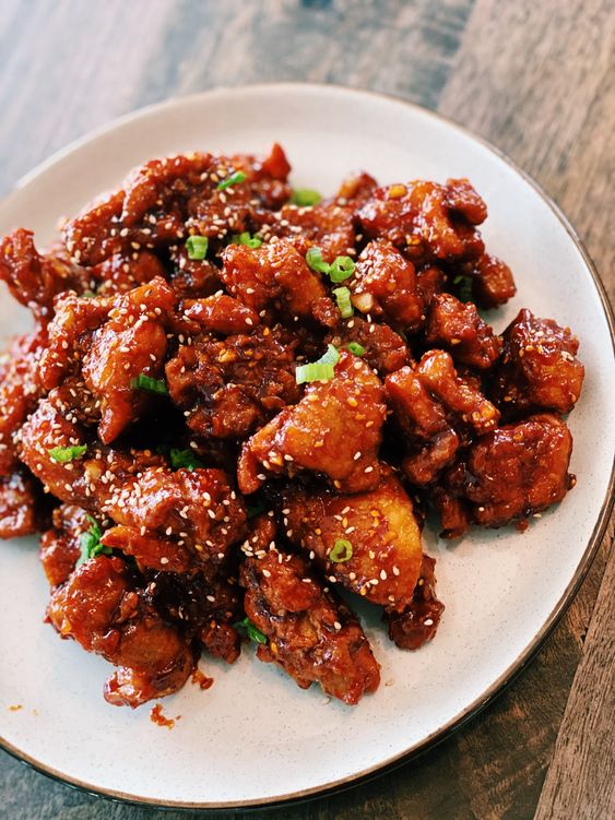 Crisp on the outside but tender and juice in the middle, this sticky Asian glazed chicken is a perfect entree for a side of rice.
