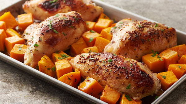 19. Apple Cider Mustard Chicken with Roasted Butternut Squash