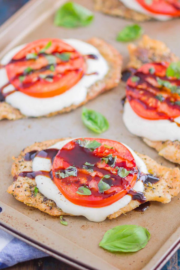 We absolutely love the flavorful, juicy cherry tomatoes along with the flavor of fresh basil, mozzarella cheese, and balsamic glaze that make this chicken dish a bonafide hit on any dinner table.