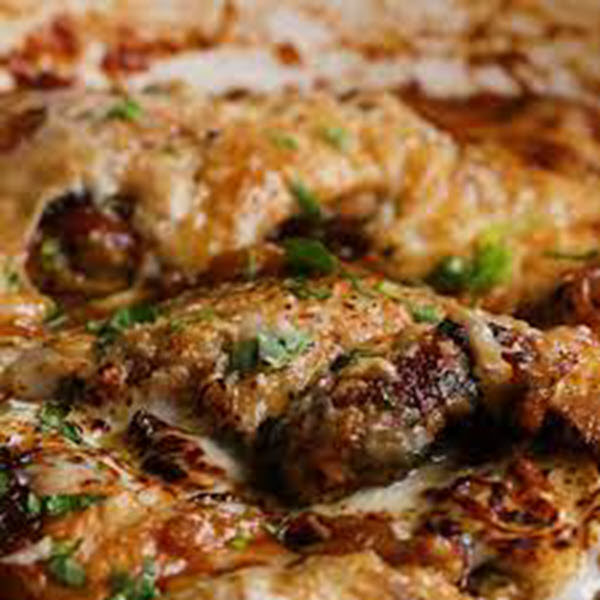 This mouthwatering dish features juicy chicken breast backed in seasonings such as garlic, butter, parsley, onions, fresh thyme, and beef stock and covered shredded gruyere cheese.