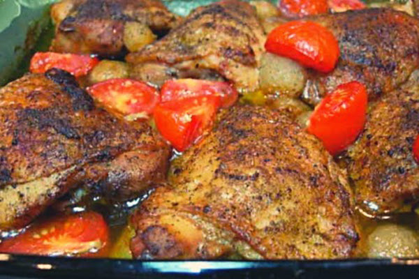 This is an old recipe that’s well known throughout the deep south and involves just a few simple ingredients, such as chicken pieces, butter, oil, spring onions, chicken broth, and small ripe tomatoes.