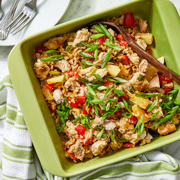 18. Pineapple Chicken Casserole with Rice and Peppers