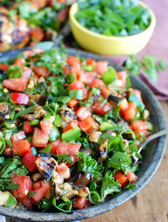 If you have leftover grilled eggplant, you’re in luck. All you need to do is make this delicious Mediterranean grilled eggplant salad.