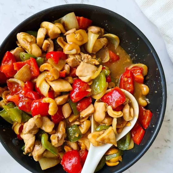 Cashew nuts mixed with chicken are the star of the show and provide a unique blend of flavors and textures.