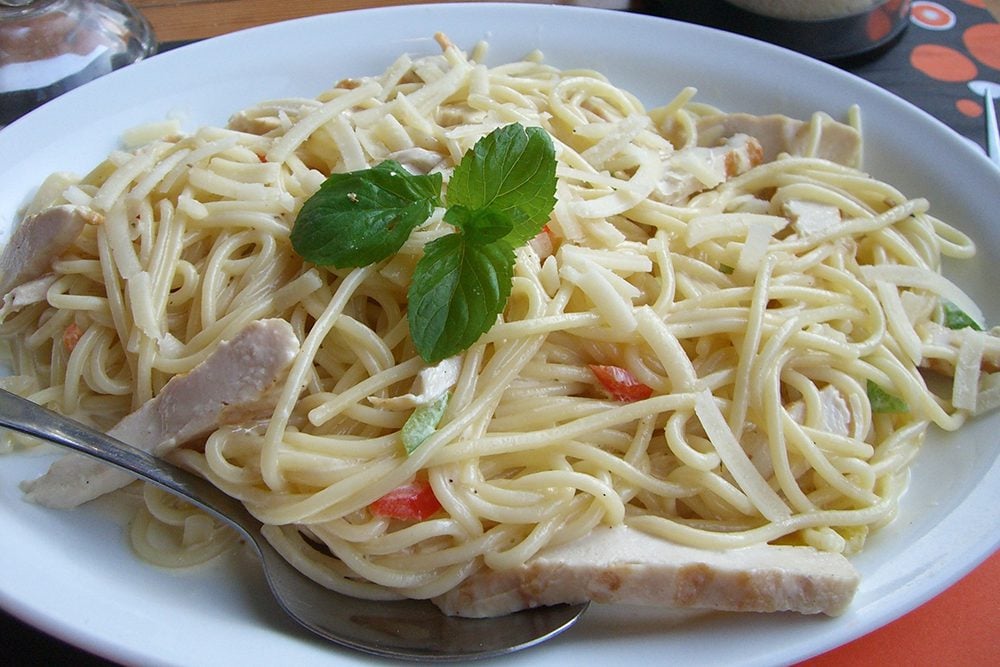 Start by mixing the cooked pasta into the creamy chicken sauce. Ensure that each strand of pasta is well coated with the rich and savory sauce. Add a sprinkle of grated Parmesan cheese to elevate the dish’s flavor to the next level.