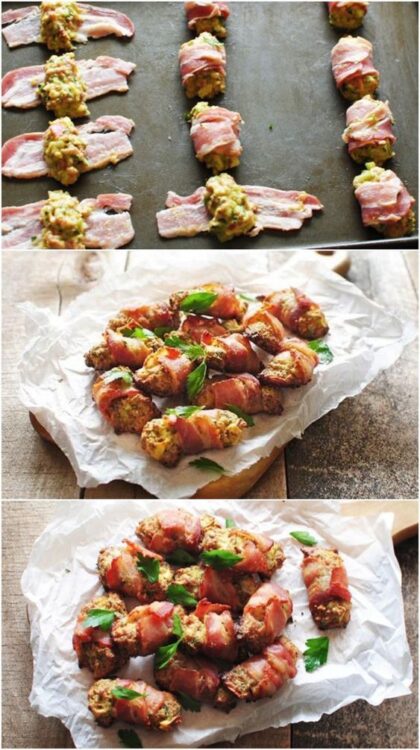 If you’re looking for the best appetizer to go with your holiday meals then the bacon-wrapped stuffing bites are a perfect choice.