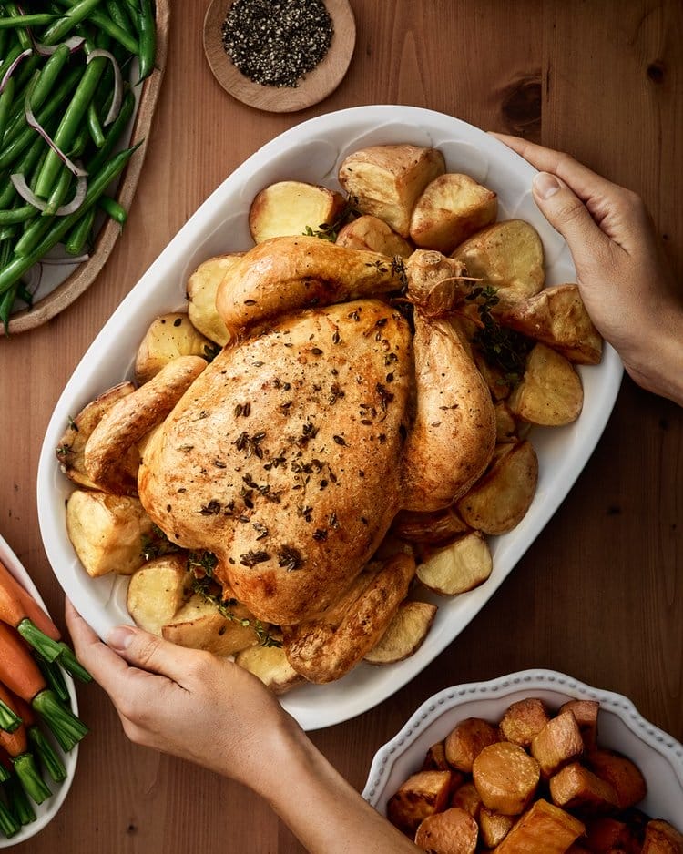 This timeless recipe creates golden, crispy skin with tender, juicy meat inside. You’ll need a whole chicken and basic herbs like thyme, rosemary, or sage.